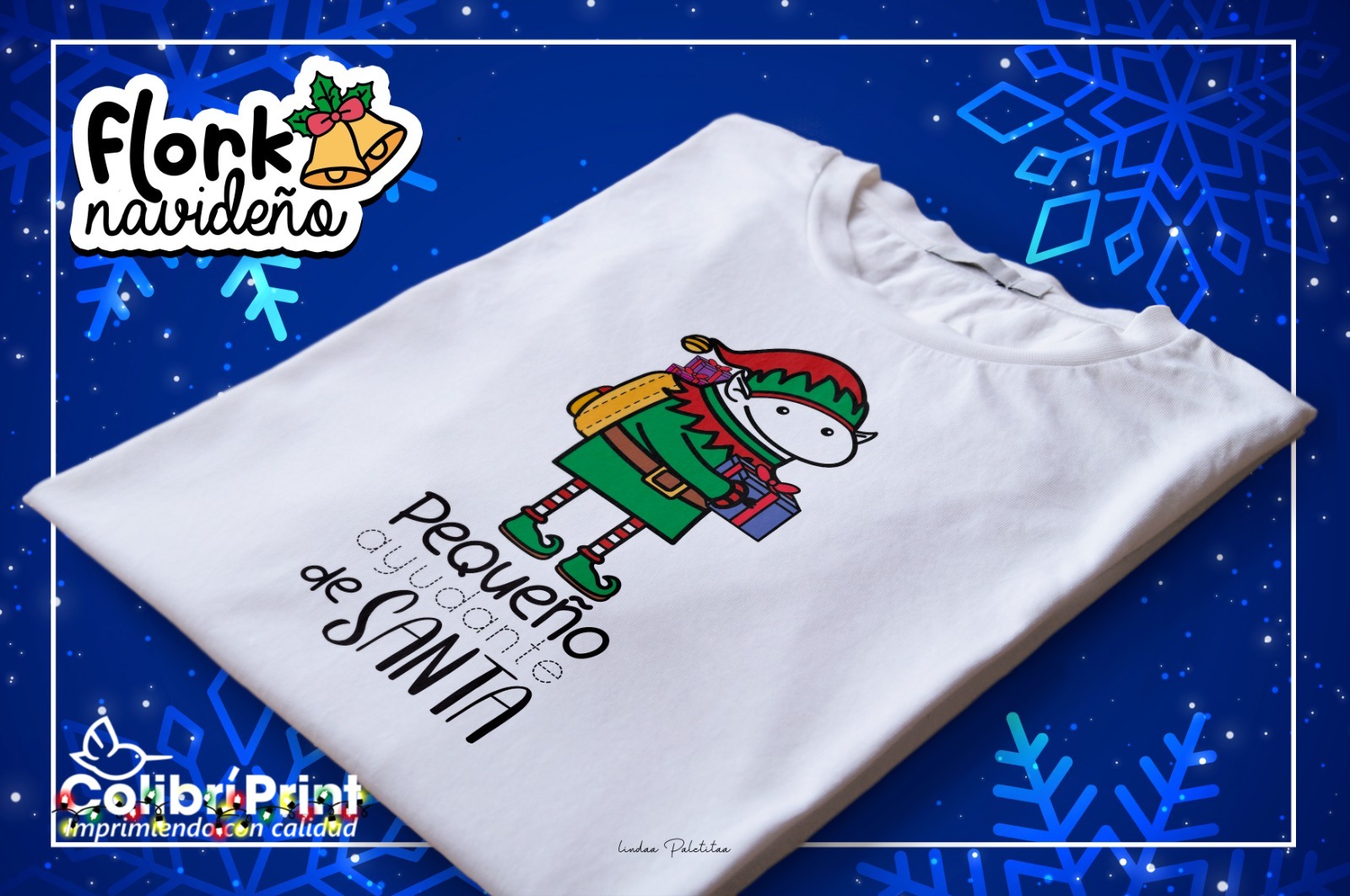 Playeras para navidad de Flork con frase «Pequeño ayudante de Santa»