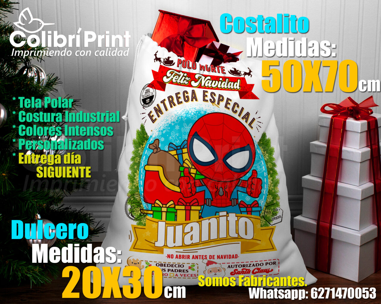 COSTALITOS NAVIDEÑOS 50cm x 70cm SPIDERMAN