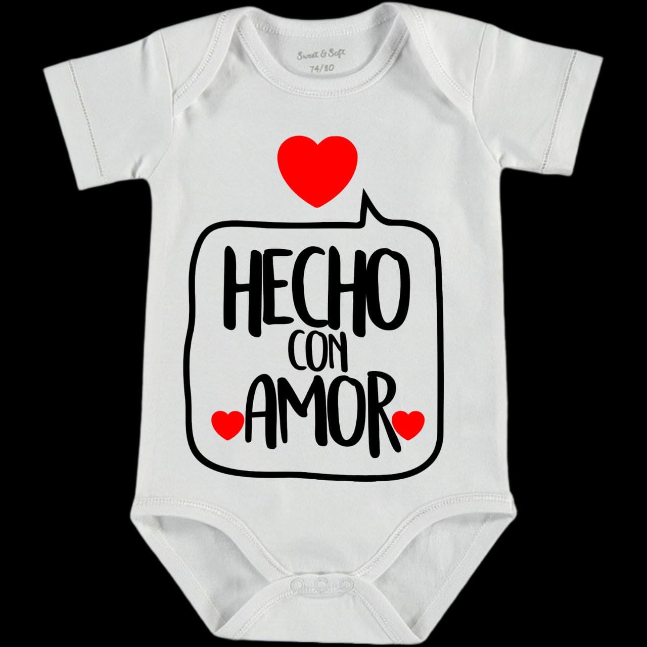Color blanco de manga corta, hecho en poliéster ultrasuave y fresco, tacto algodón e imagen hecha por sublimación (por lo cual tu bebé estará muy cómodo pues no es una calcamonía).