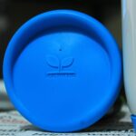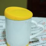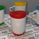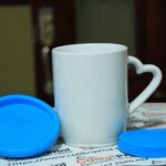 Taza azul 11 oz con tapa y base de silicón