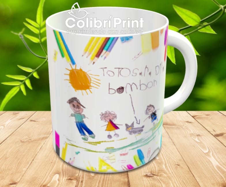 Personalizamos la taza con el dibujo de tus hijos.